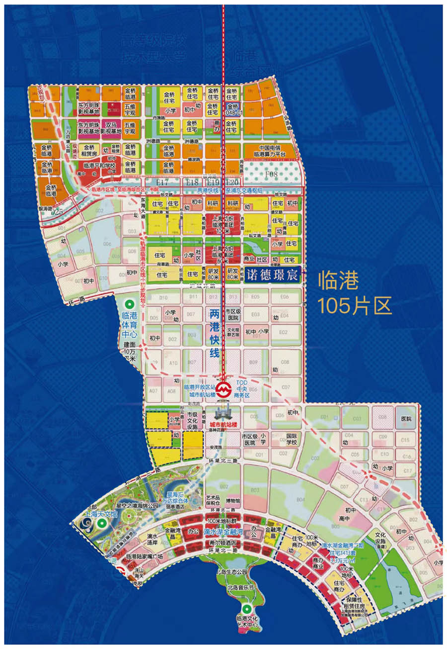 贯穿105板块的两港快线已经在建设中,将实现临港新片区与虹桥国际机场、浦东国际机场的快速联系,进一步提升临港新片区、特别是105片区的发展能级,还有16号线,速联全市;东海大道、两港大道、临港大道等日常通勤畅达。