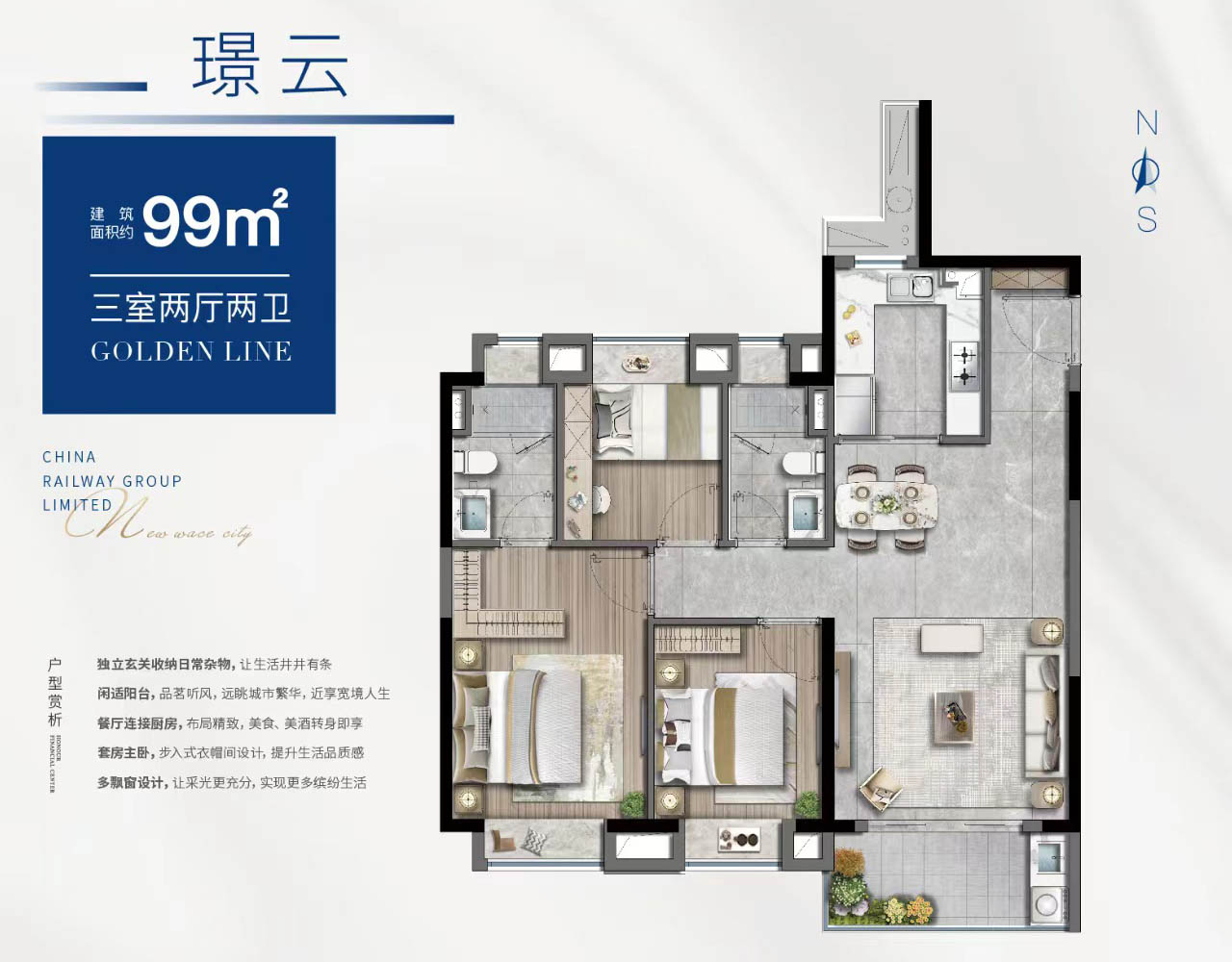 中国中铁•诺德璟宸深谙临港人居需求,以引以为傲的诺德幸福+生活体系为基础,匠心打造建面约89—129㎡幸福+菁智住区,全生命周期户型,空间布局合理,功能与尺度兼顾,满足不同客群、不同生活阶段的居住需求,赋予生活更多生命力。”