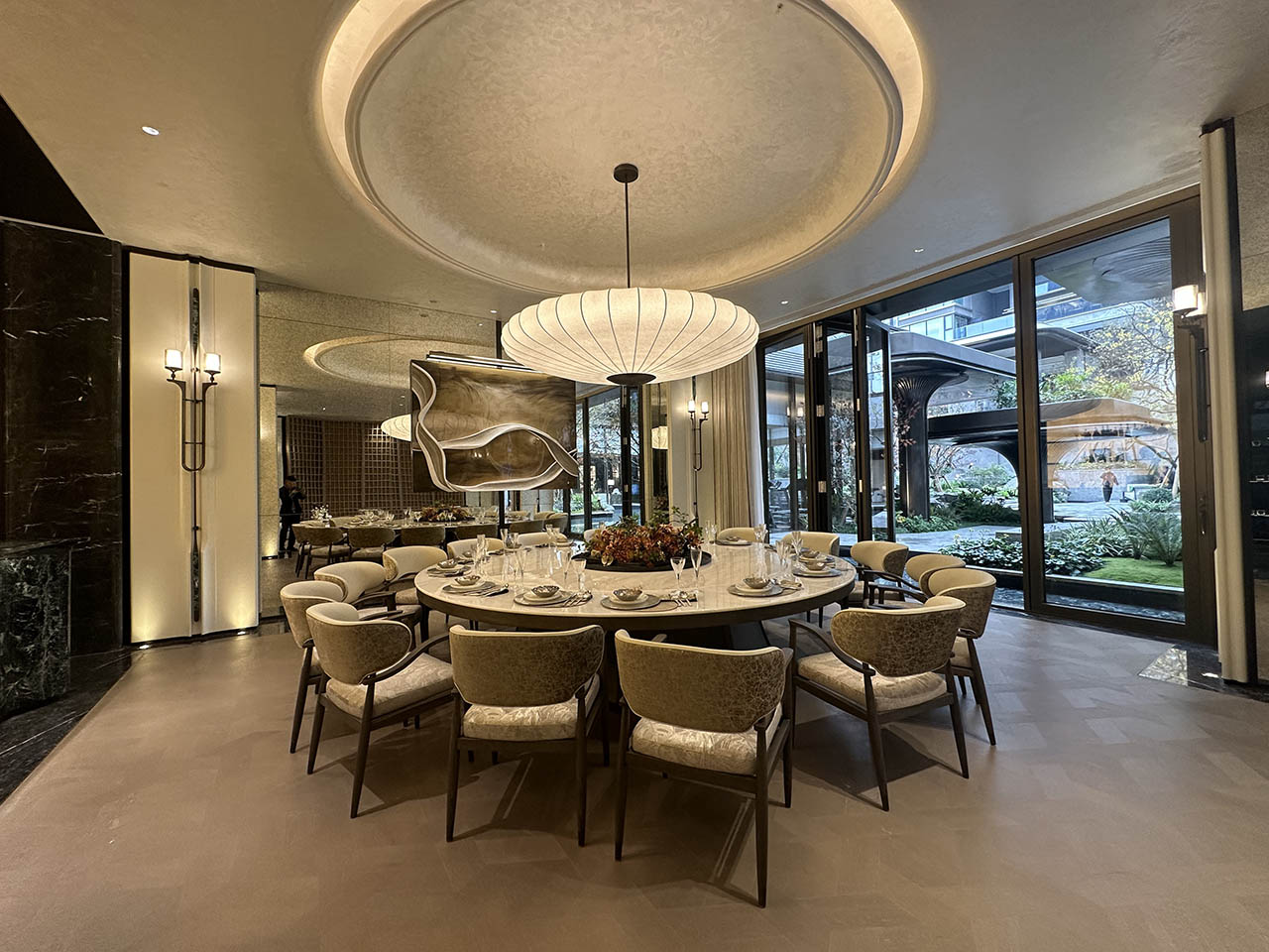 双会所体系,包含约2200平米的主会所与1000平米的泛会所,体量高达3200平,功能空间复合多元,涵盖多种生活场景,有专业级沉浸式录音棚、主厨明火私宴厅,也有spa、瑜伽室、棋牌室等空间。