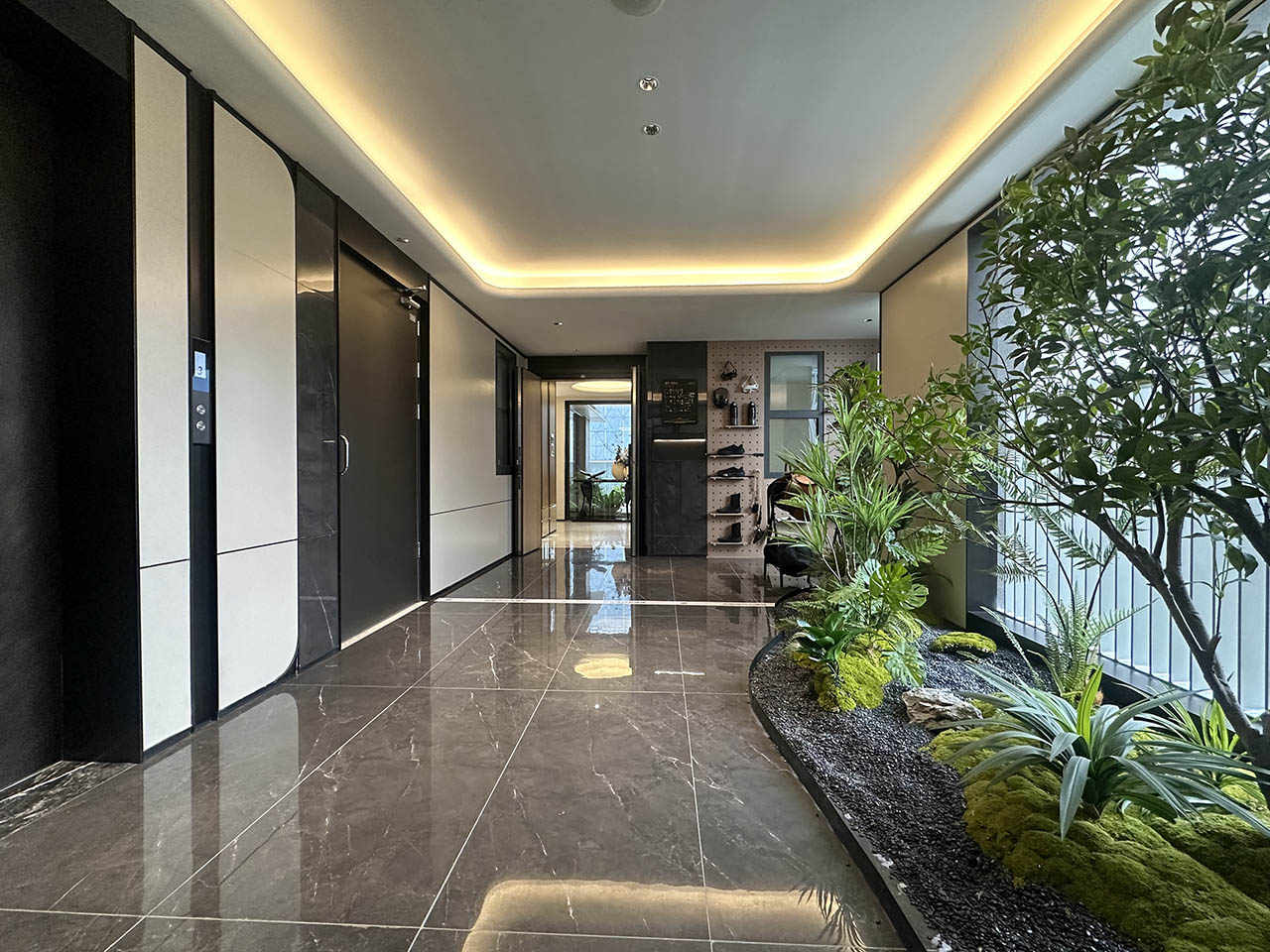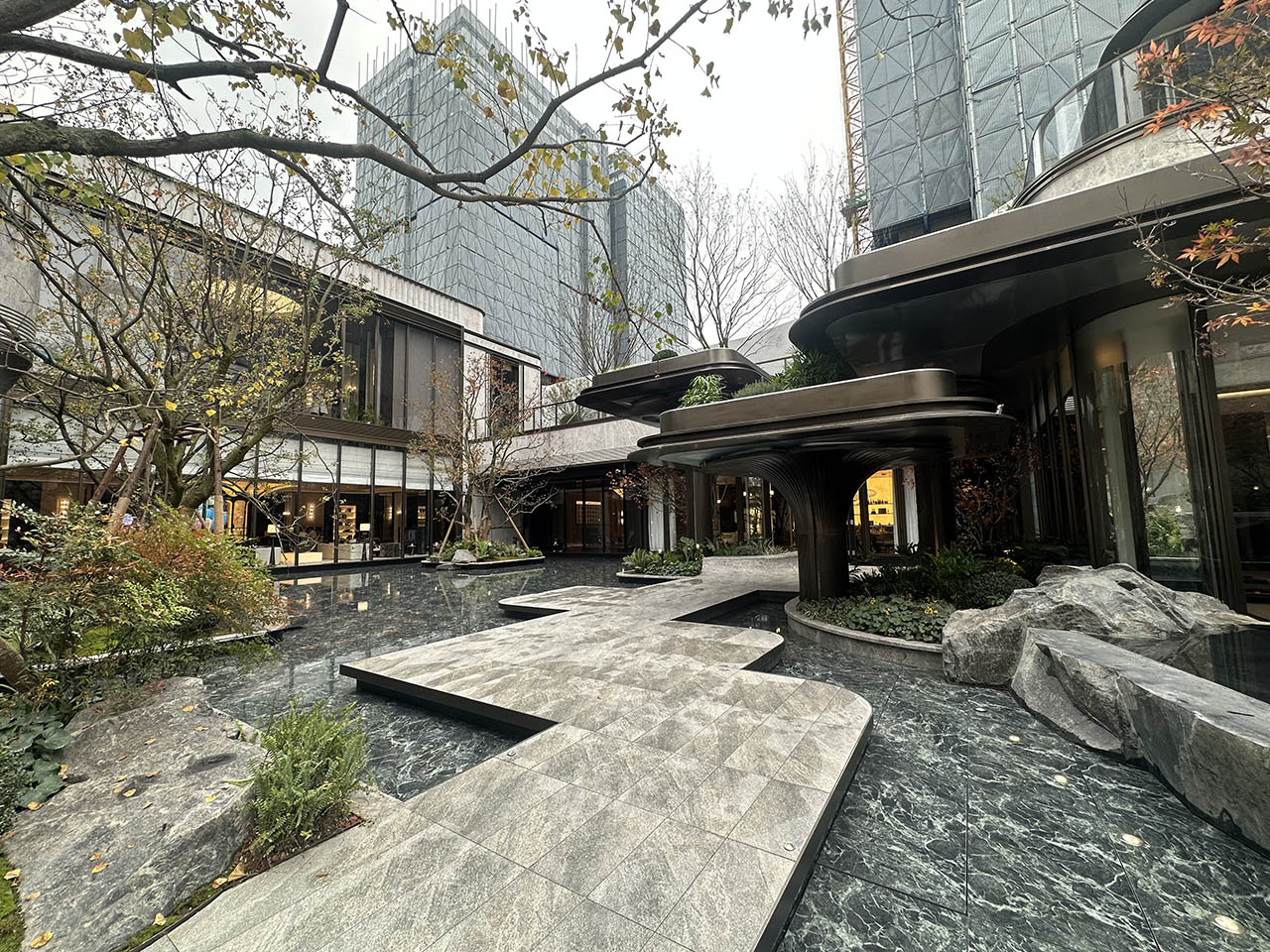 生态院落挑高高约6米,为植物生长预留充足采光空间,让自然向上生长,树冠完整舒展。