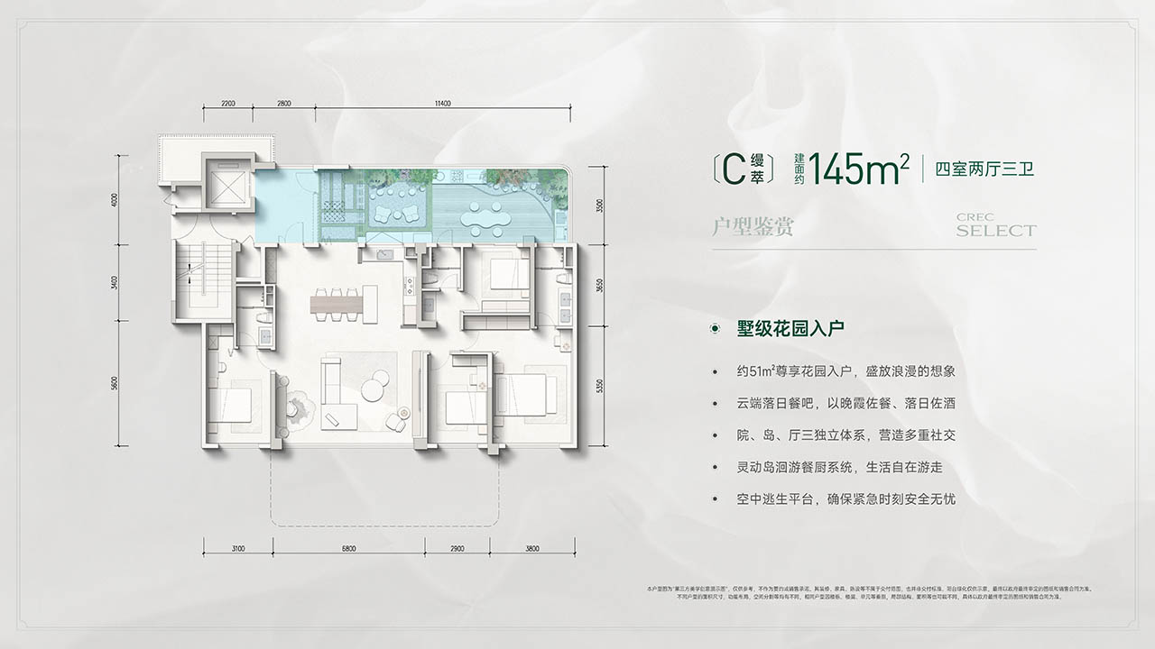 响应国家“好房子”战略,以央企担当,从安全、舒适、绿色、智慧四大核心维度,打造“安心、省心、倾心、舒心、贴心”的五心好房,从自然、空间等进化革新,让自然向上生长,把庭院搬到天空。